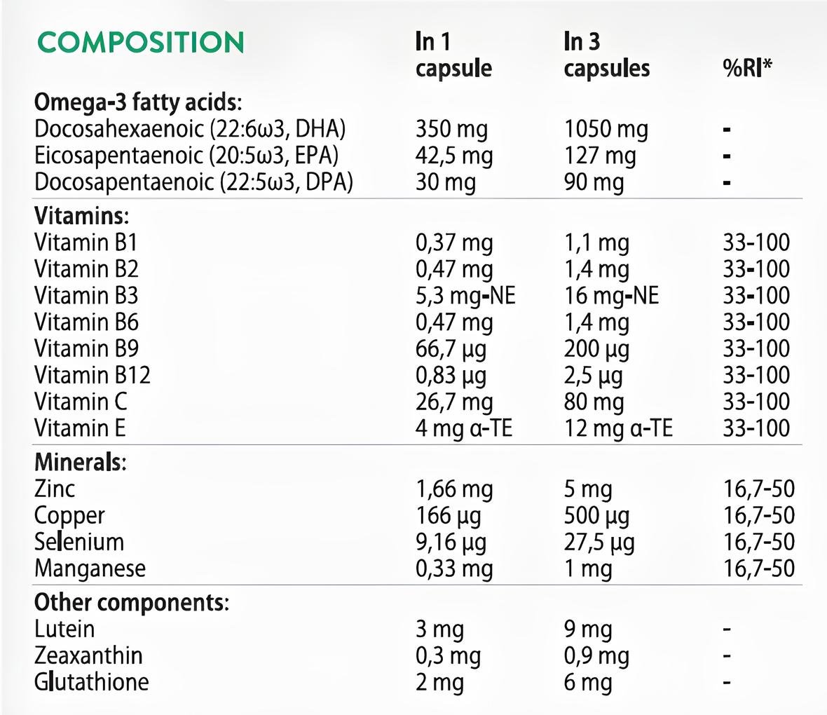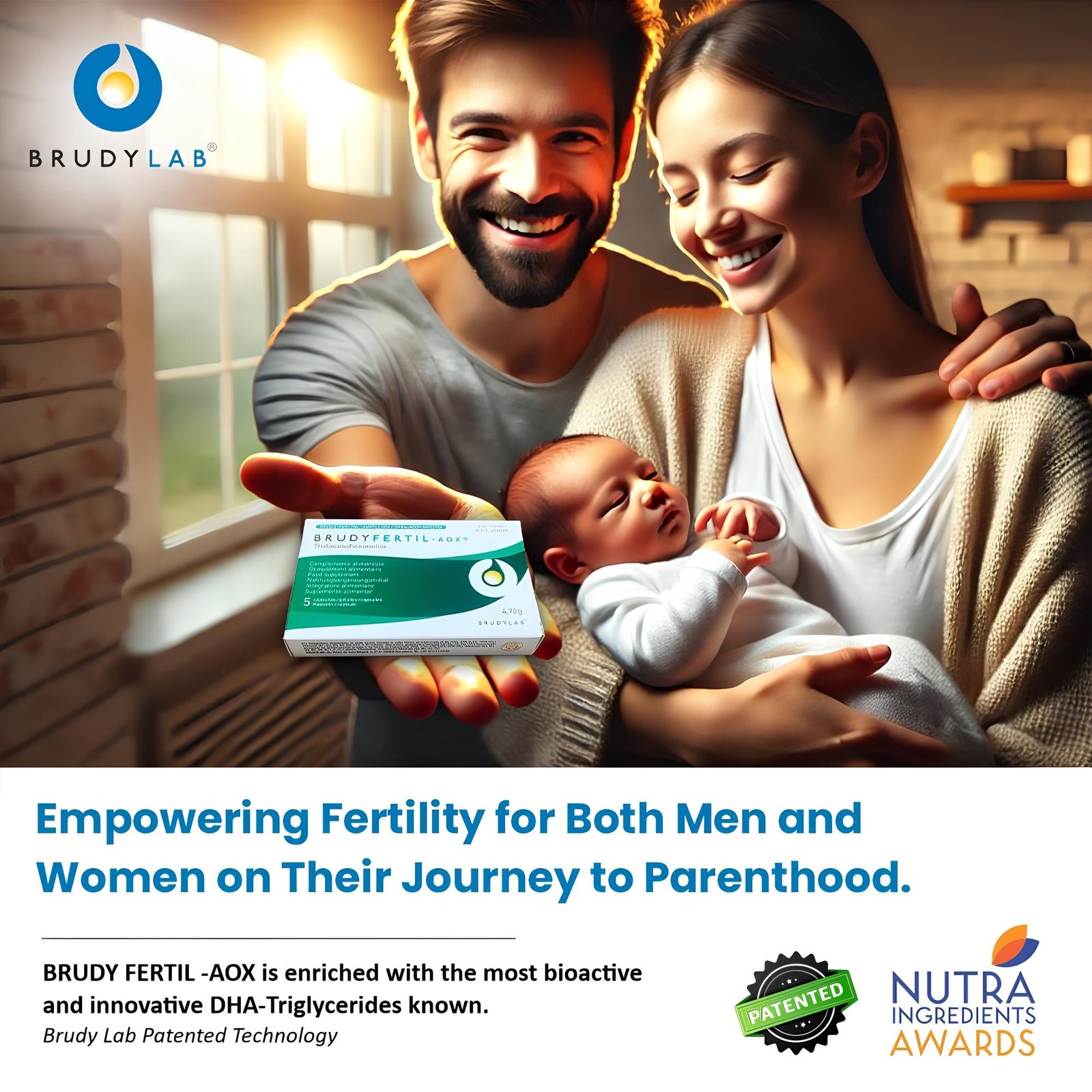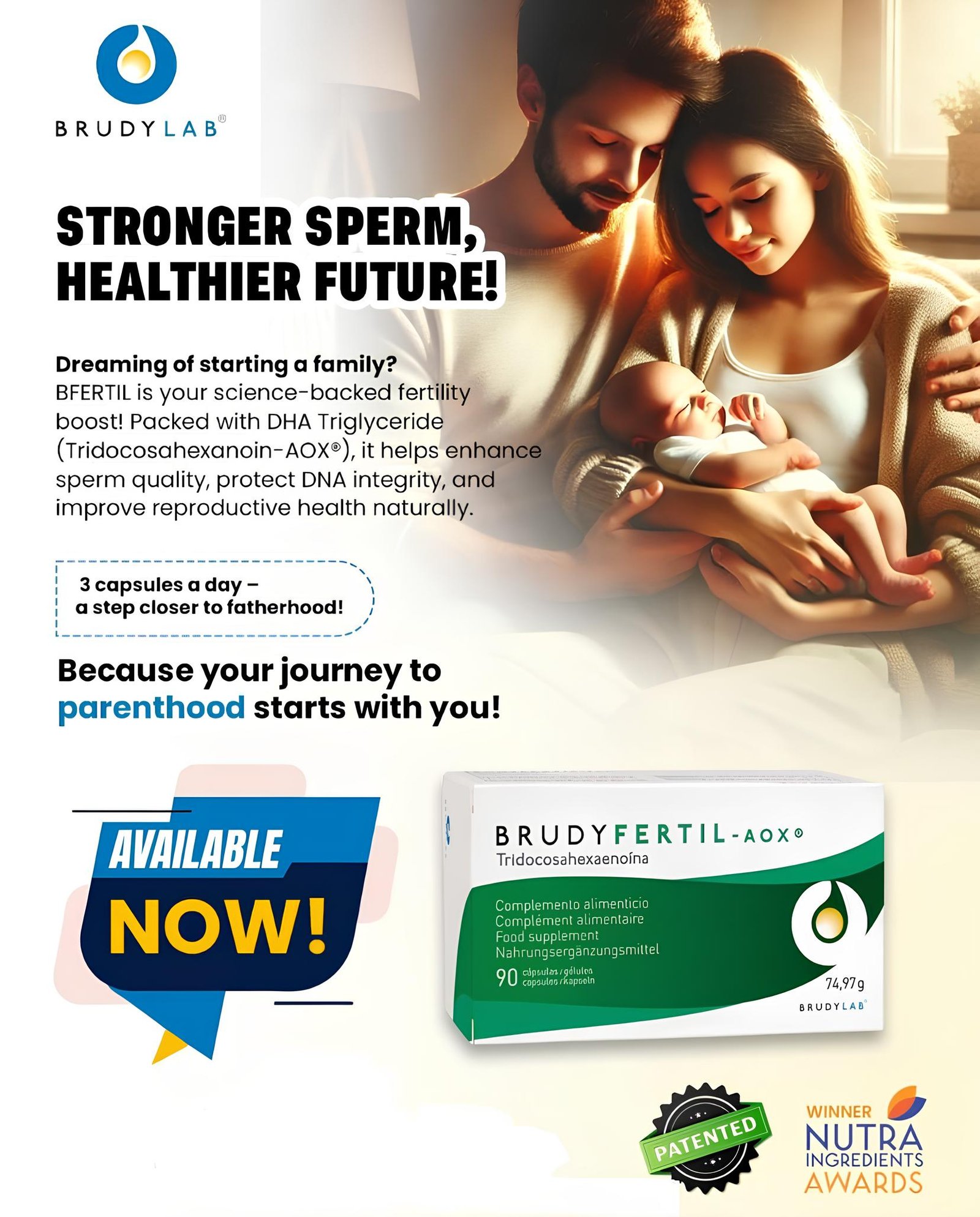 Food supplement containing Tridocosahexanoin-AOX (DHA triglycerides). Used to support reproductive health and enhance fertility in males and females who plan to conceive.